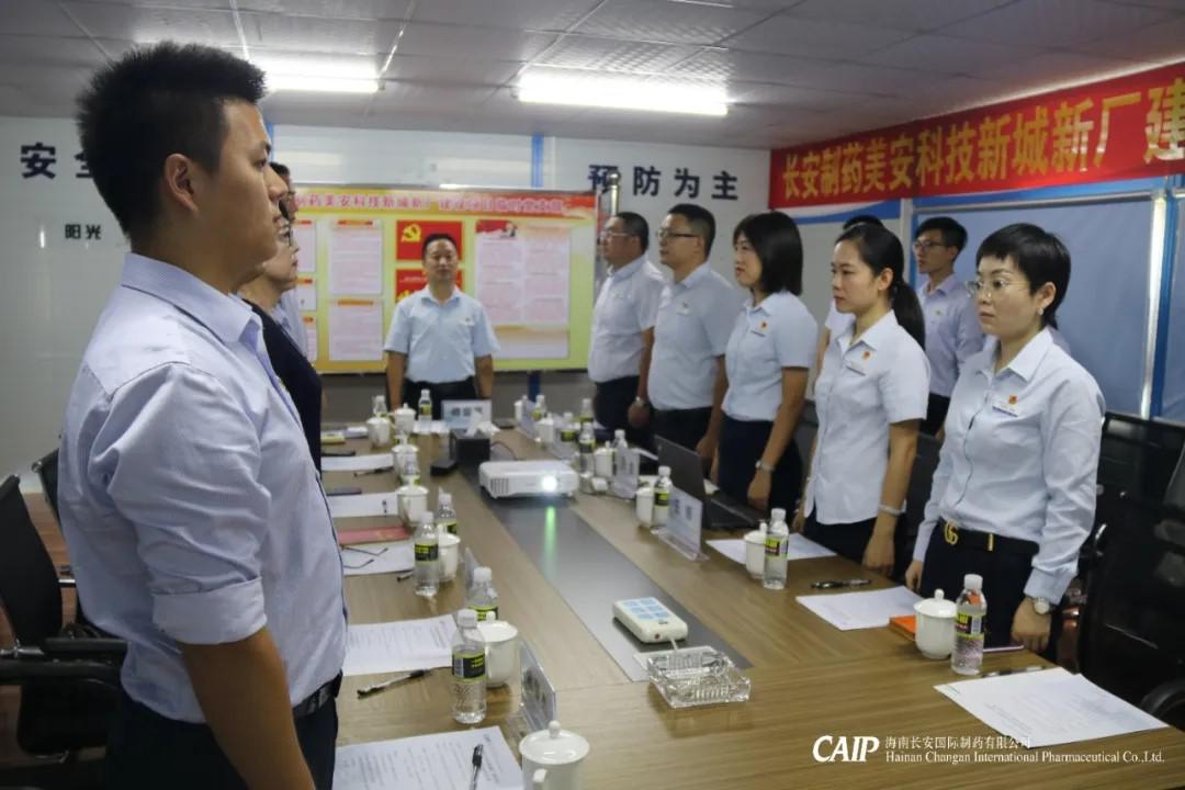 2020年7月1日上午,在慶祝中國共產(chǎn)黨建黨成立99周年之際,長(zhǎng)安制藥美安科技新城新廠建設(shè)項(xiàng)目臨時(shí)黨支部成立大會(huì)順利召開。高新區(qū)兩新組織黨委專職副書記傅愛萍、海南長(zhǎng)安制藥支部書記汪立冬、海南萬泰支部副書記孟晨以及長(zhǎng)安制藥美安科技新城新廠建設(shè)項(xiàng)目臨時(shí)黨支部全體黨員參加成立大會(huì)及揭牌儀式。