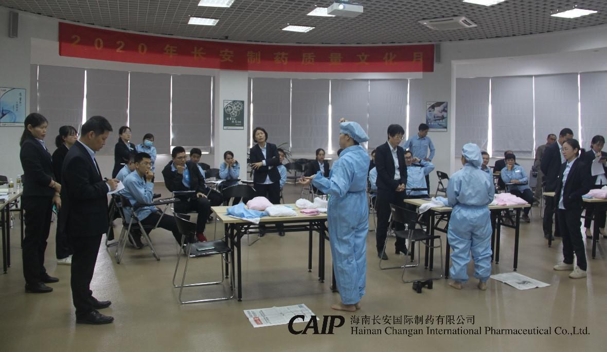 為了強(qiáng)化公司管理,保證藥品質(zhì)量,規(guī)范人員進(jìn)入潔凈區(qū)的操作程序,2020年12月10日(周四)上午,在長安制藥6樓會(huì)議室開展了2020年長安制藥質(zhì)量文化月系列活動(dòng)——生產(chǎn)SOP實(shí)操比拼。